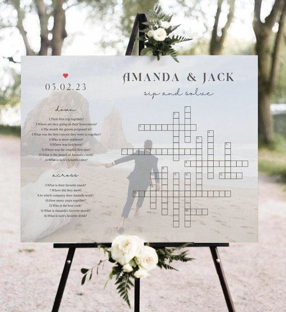 Wedding Crossword Puzzle with Photo Template Personalized Bridal Shower