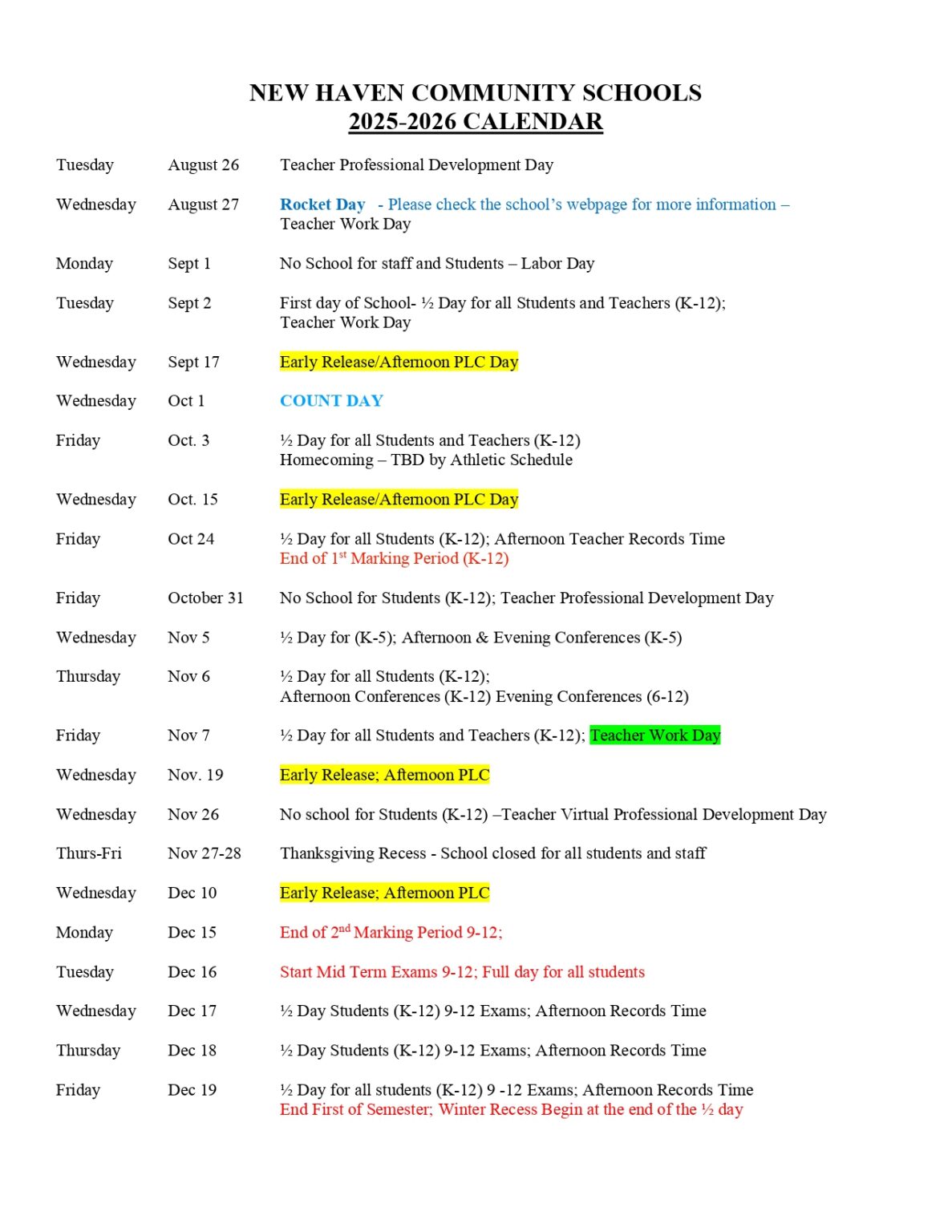 New Haven Community Schools MI Calendar 25 26 Revised pdf EduCounty