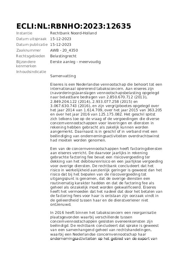 Netherlands vs quot Tobacco B V quot December 2023 North Holland District