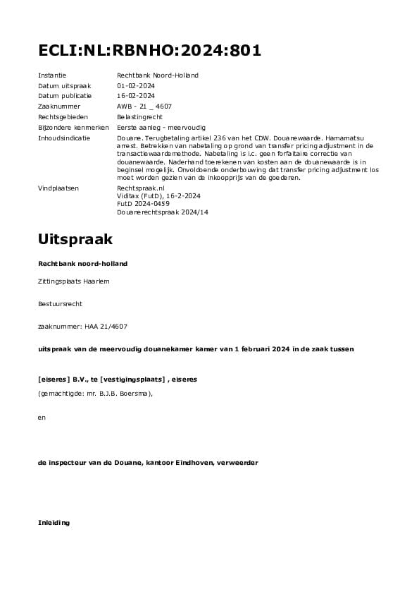 Netherlands vs quot MC Parts B V quot February 2024 North Holland District