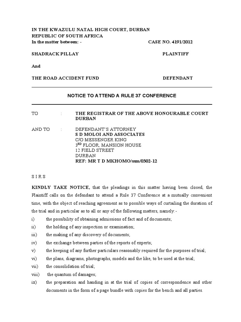 3 Notice To Attended A Rule 37 Conference 4 PDF Lawyer