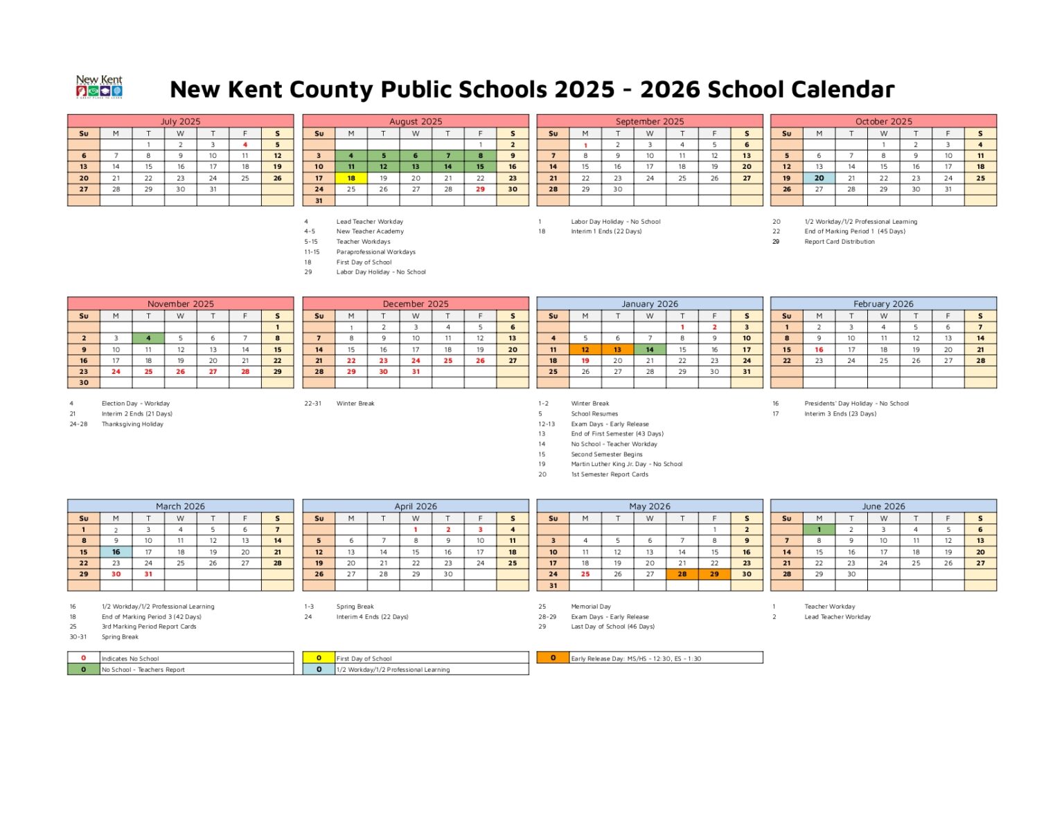 New Kent County Schools Calendar