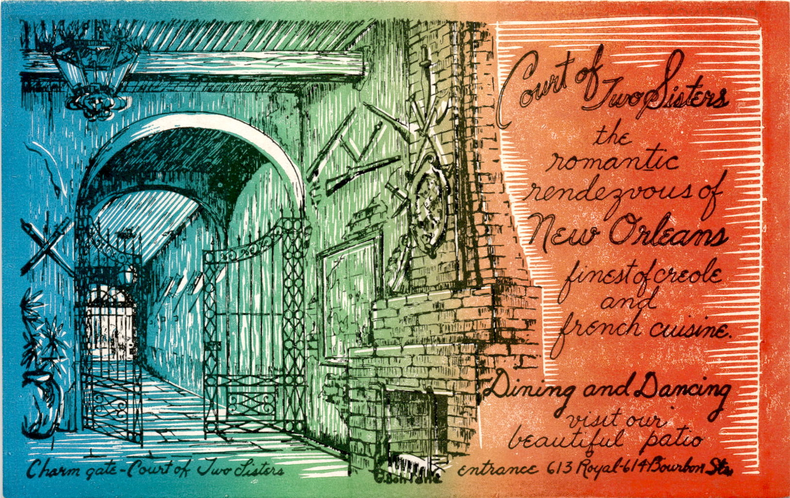 New Orleans Court of Two Sisters Creole French cuisine romantic his