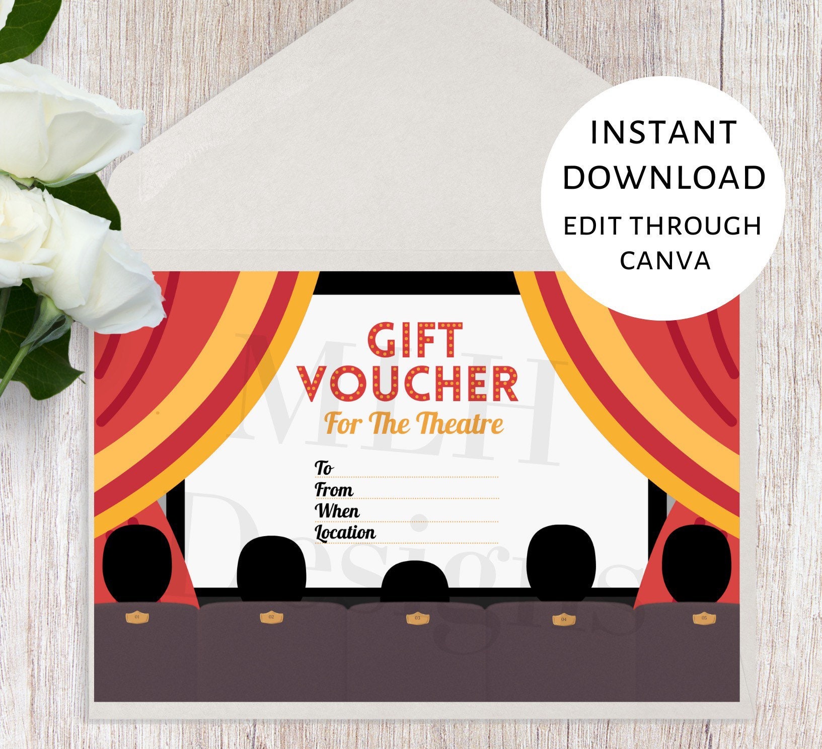 Theatre Ticket Gift Voucher Template Personalised Gift Voucher Unique