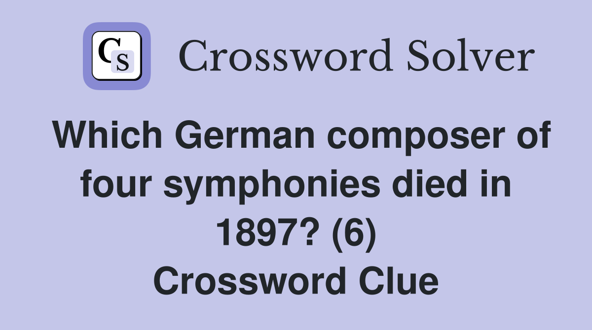 Which German composer of four symphonies died in 1897? (6) Crossword