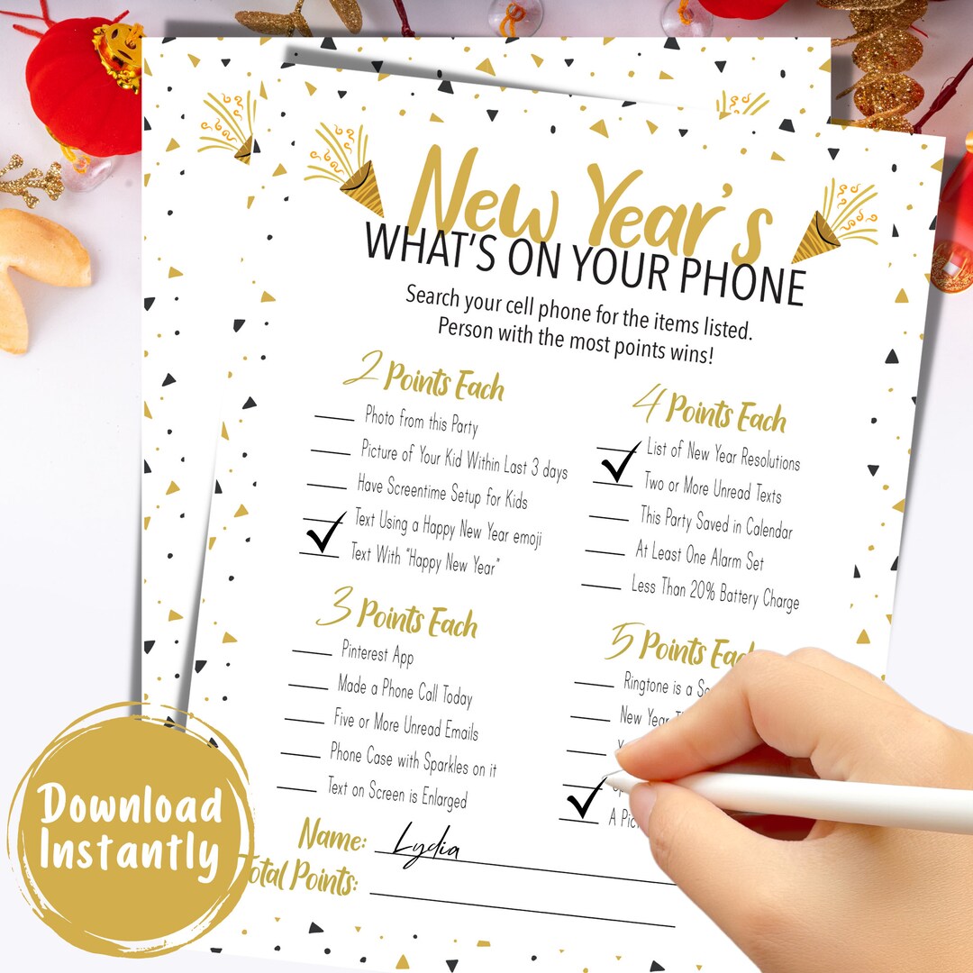 New Years Eve Games New Years What #39 s on Your Phone Printable New