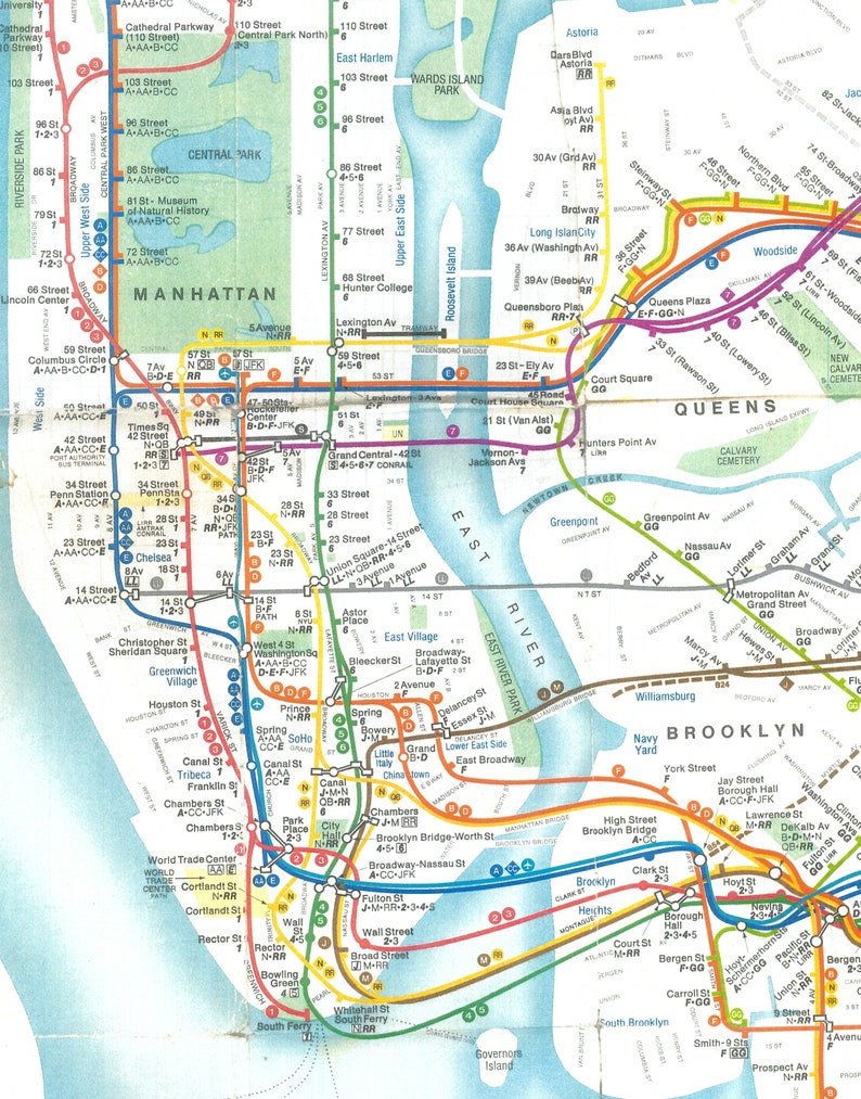 New York Subway Map 1980s View of Manhattan and the Boroughs Etsy