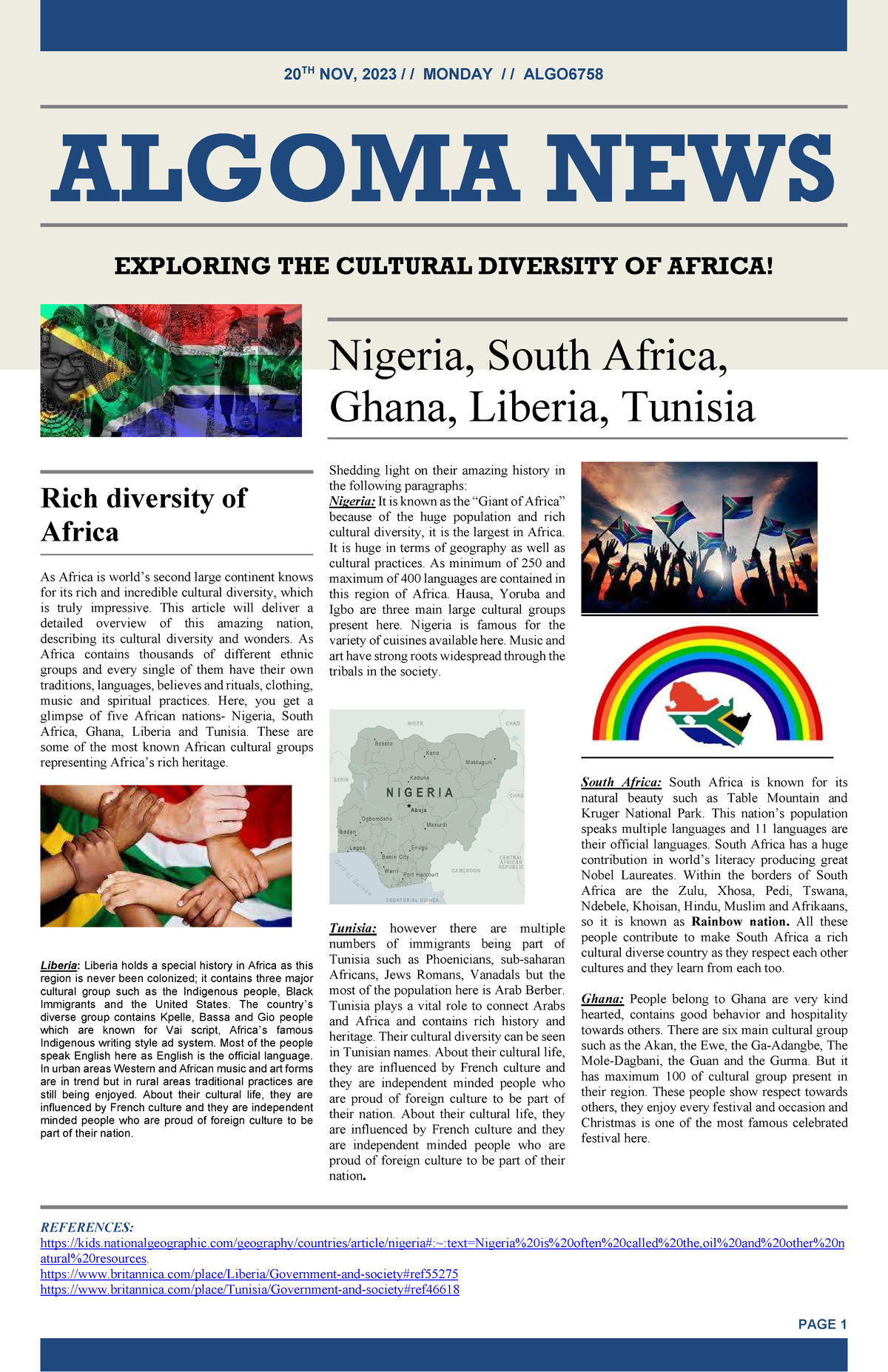 Newpaper article Group Project : Africa 20 TH NOV 2023 / / MONDAY