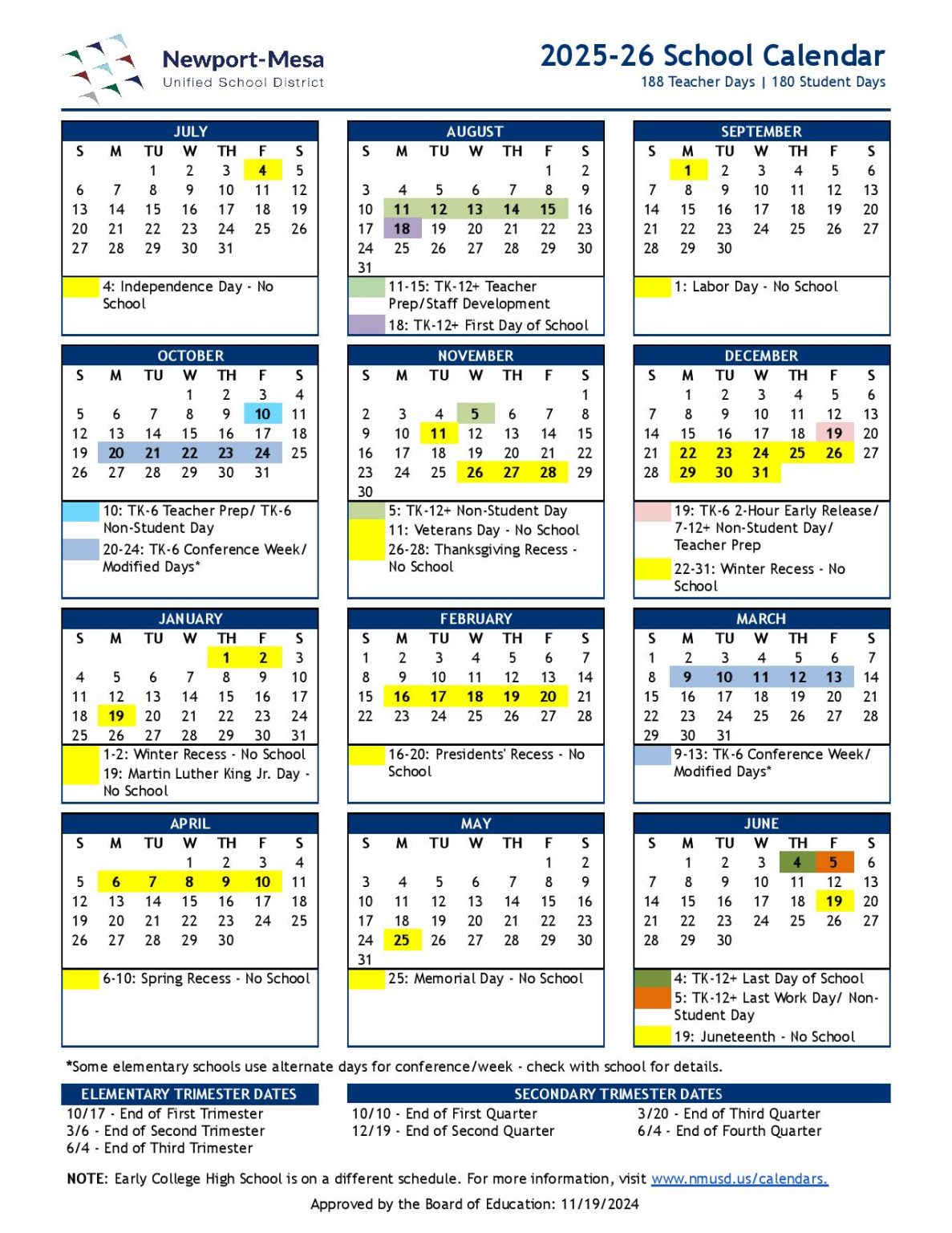 Newport Mesa Unified School NMUSD Calendar 25 26 PDF EduCounty