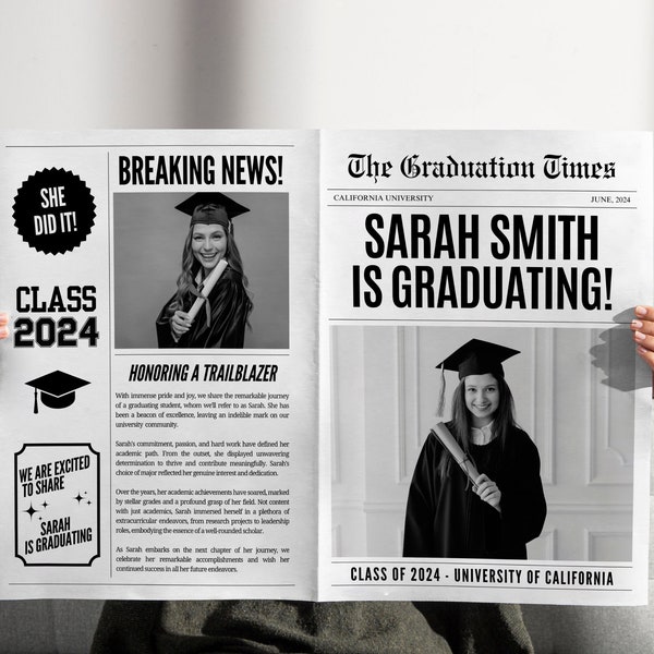 Graduation Newspaper Editable Template Time Event Designs