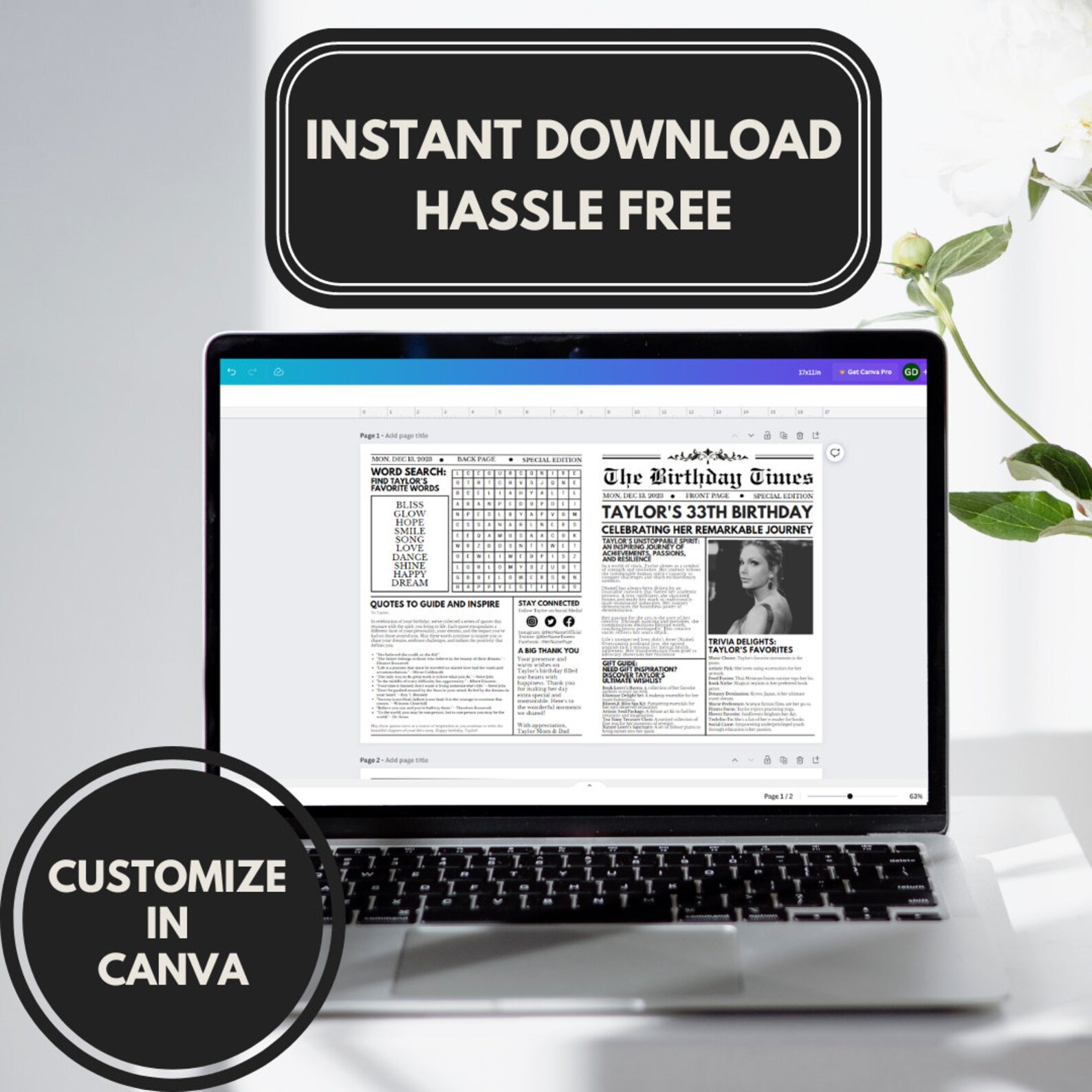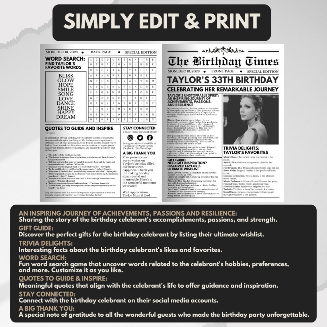 Birthday Newspaper Editable Template Graphic by CANVA Templates Designs