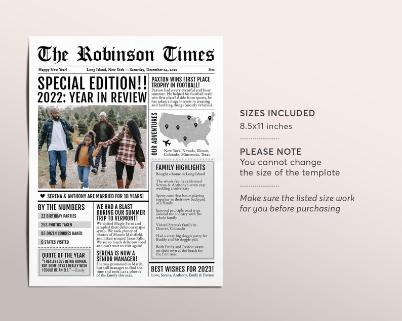 Year in Review Family Newspaper Editable Template Newsletter Etsy