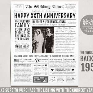 Back in 1957 66th 67th 68th Anniversary Gift Newspaper Editable
