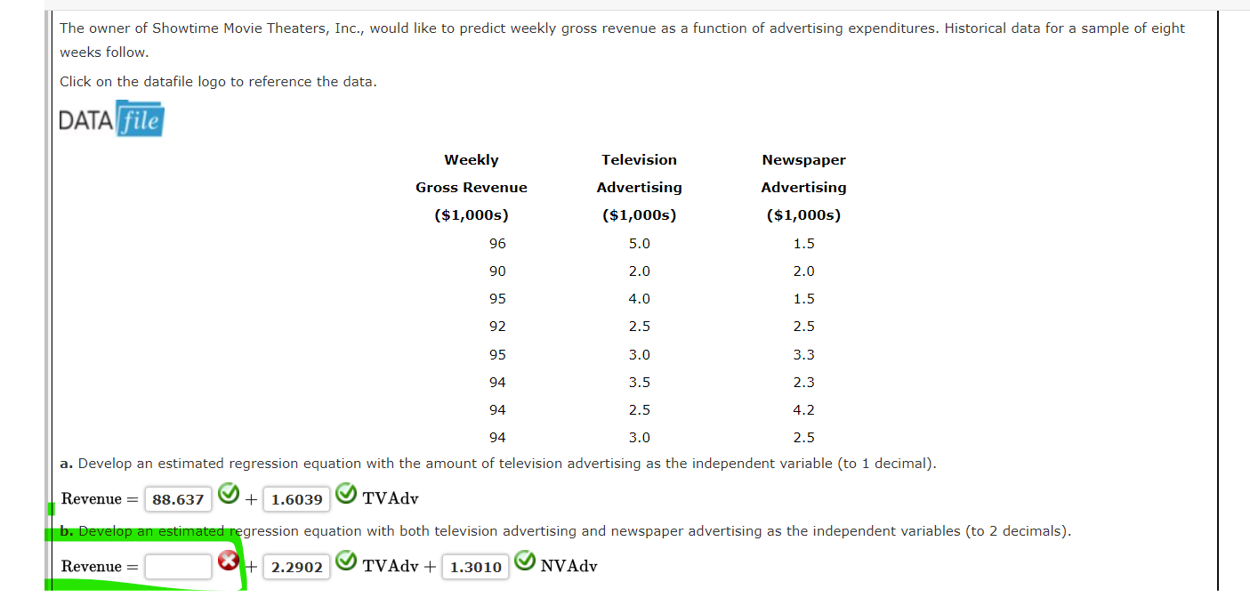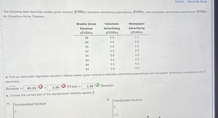 Solved The following data describes weekly gross revenue Chegg com