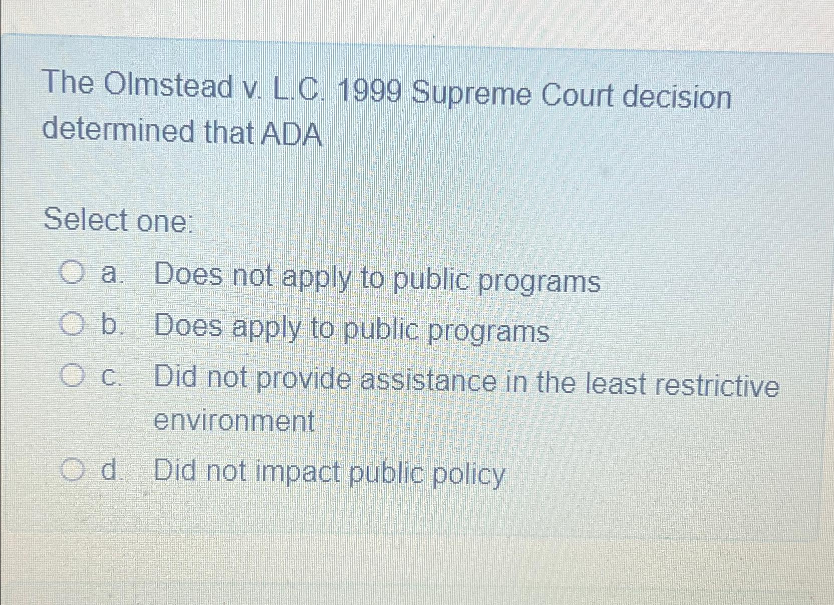 Solved The Olmstead v L C 1999 Supreme Court decision Chegg com