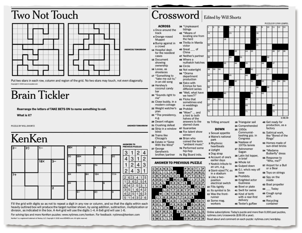 Today s Ny Times Crossword Printable Free Printable Crosswords