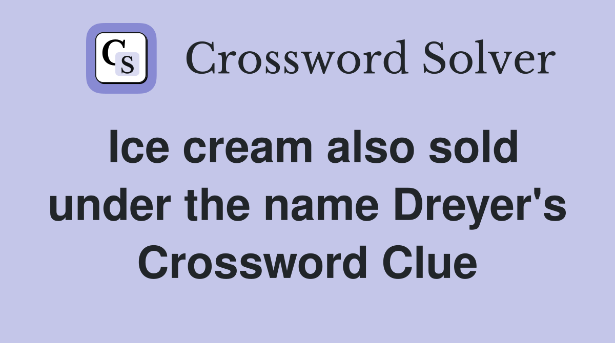 Ice cream also sold under the name Dreyer #39 s Crossword Clue Answers
