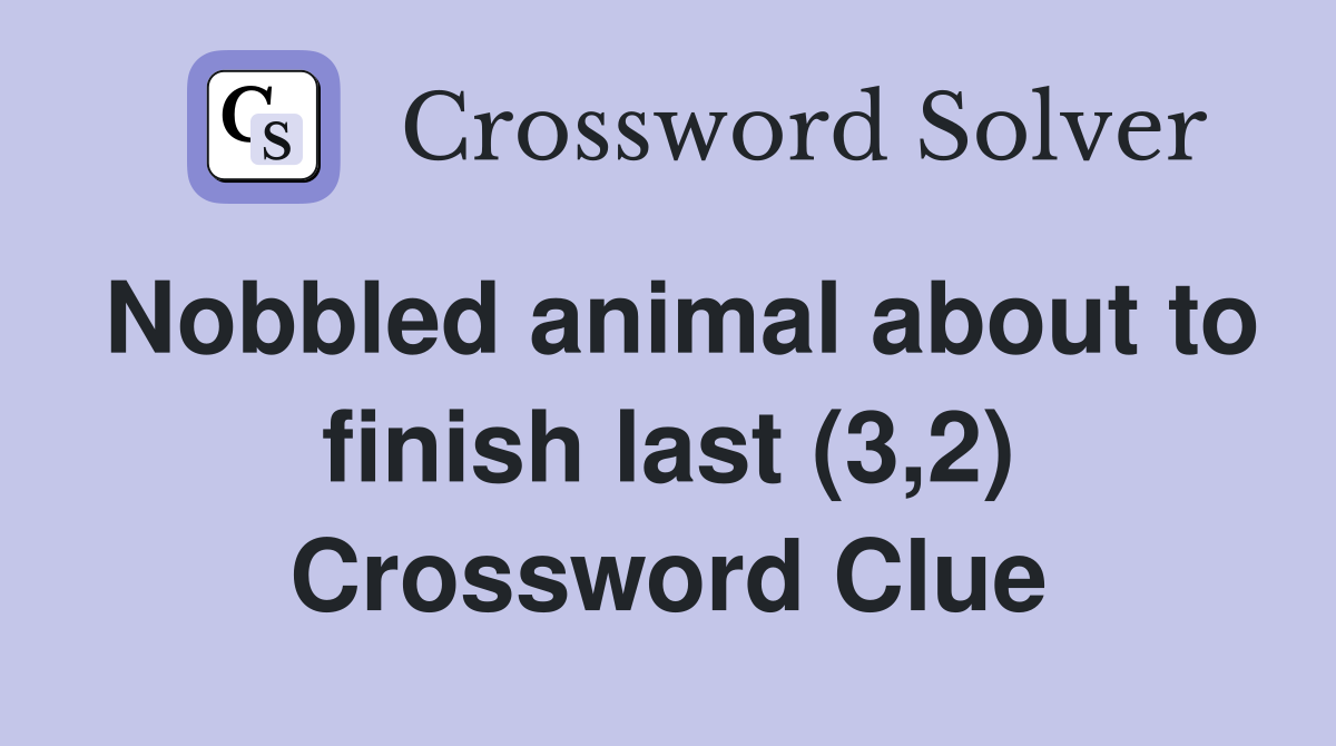 Nobbled animal about to finish last (3 2) Crossword Clue Answers