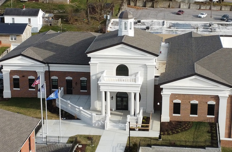 Aerial Top Down View of Henry County Family Court in Downtown Napoleon