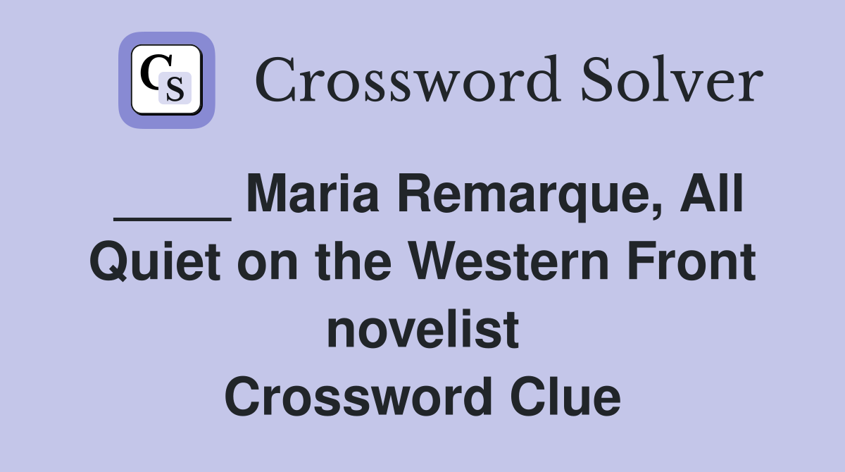 Maria Remarque All Quiet on the Western Front novelist Crossword