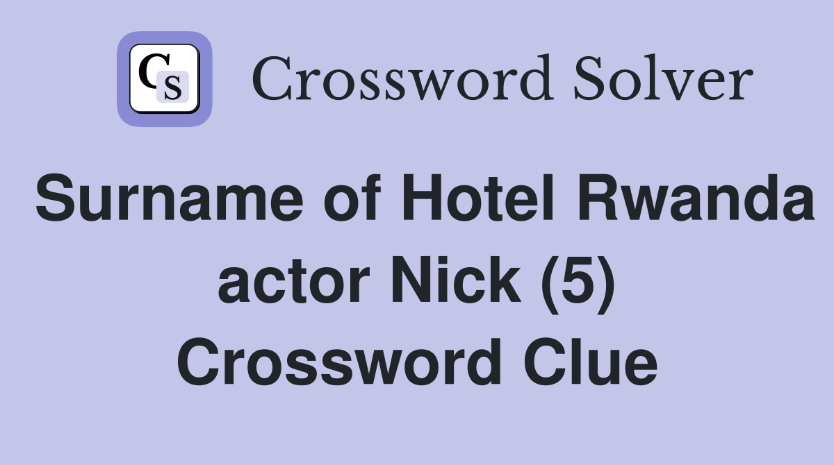 Surname of Hotel Rwanda actor Nick (5) Crossword Clue Answers