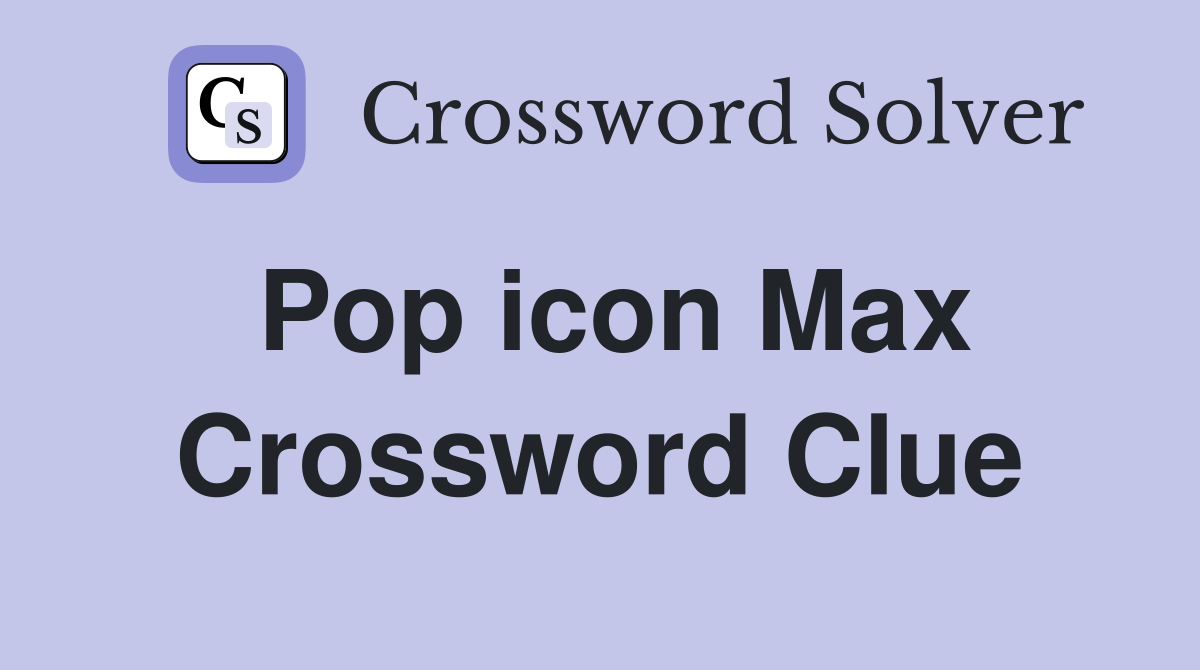 Pop icon Max Crossword Clue Answers Crossword Solver