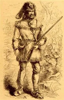 1950s: Character of Natty Bumppo walks through forest and aims rifle
