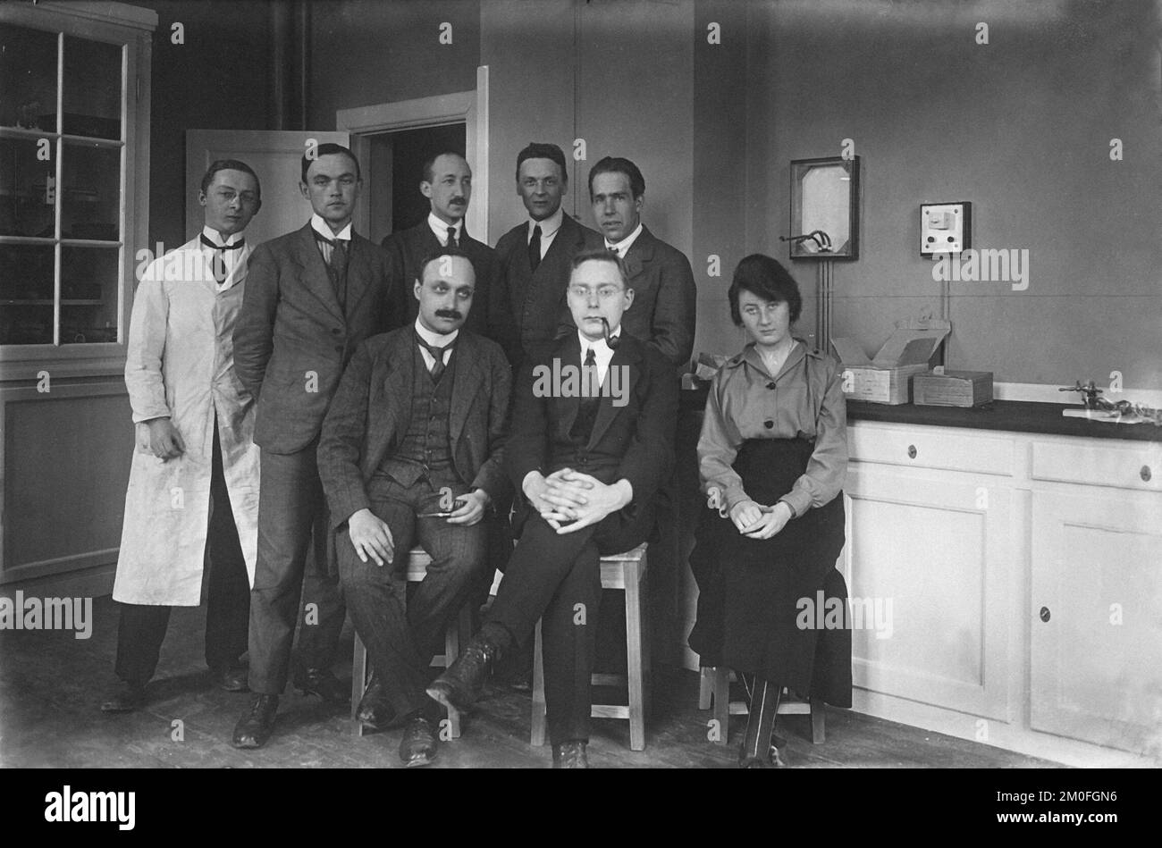 Danish physicist Niels Bohr and his team at the Niels Bohr Institute in