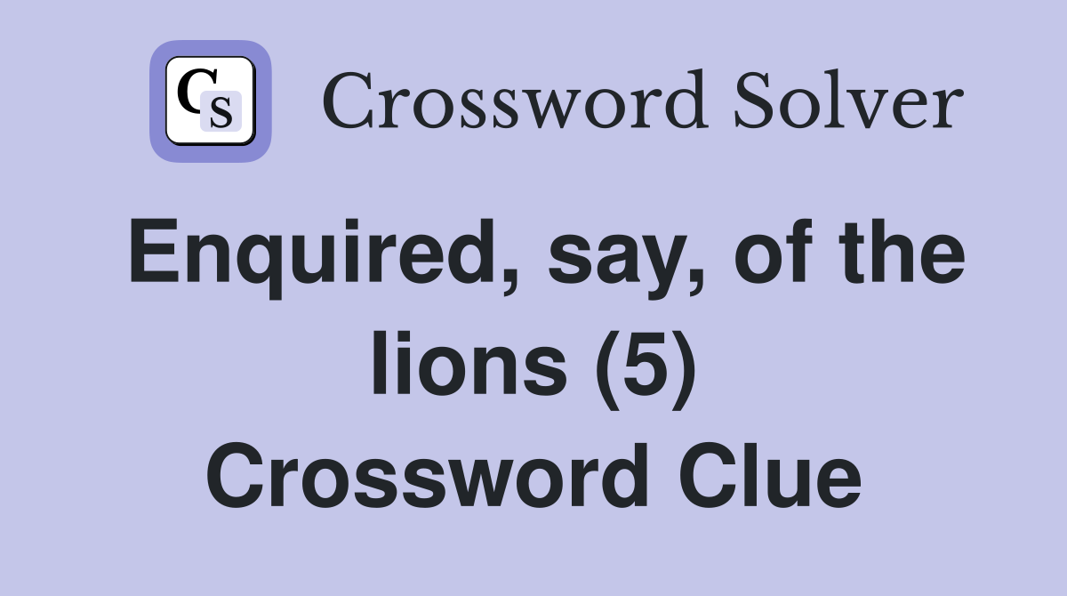 Enquired say of the lions (5) Crossword Clue Answers Crossword Solver