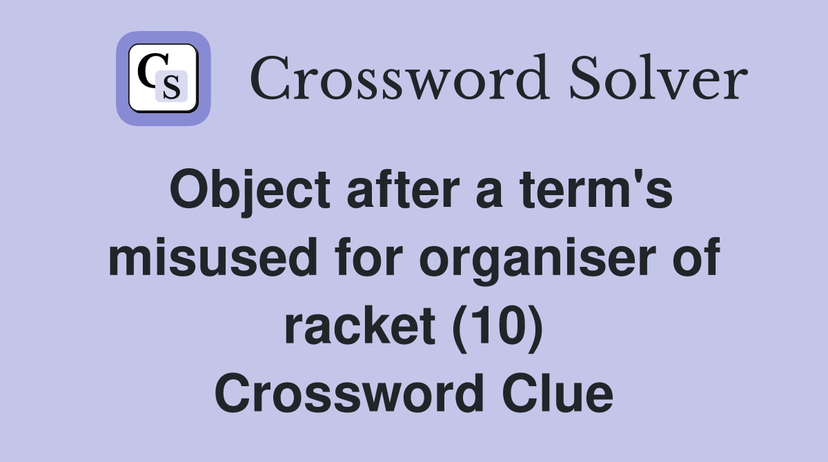Object after a term #39 s misused for organiser of racket (10) Crossword