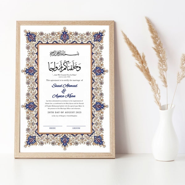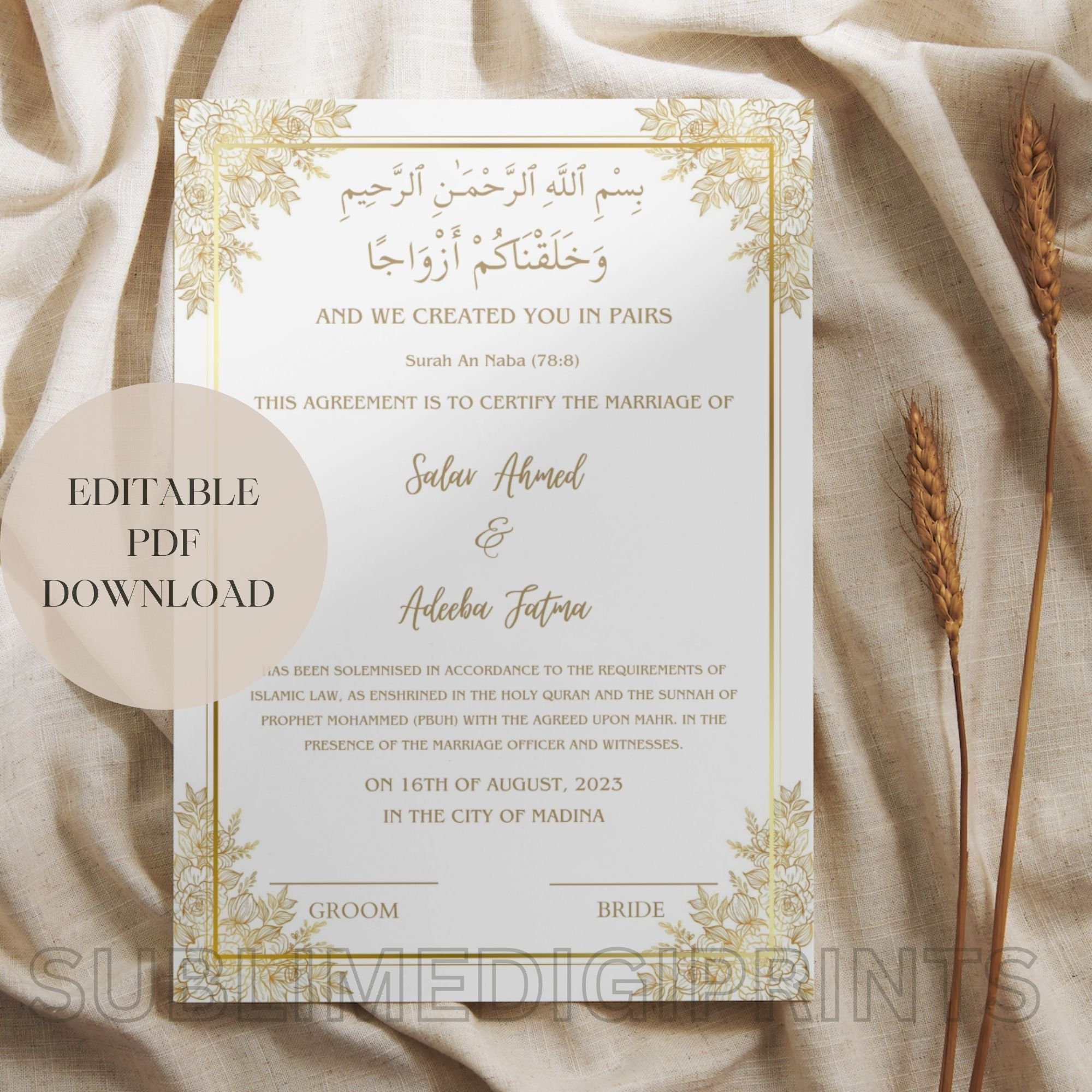 Nikkah Islamic Marriage Certificate PRINTABLE Nikah Certificate