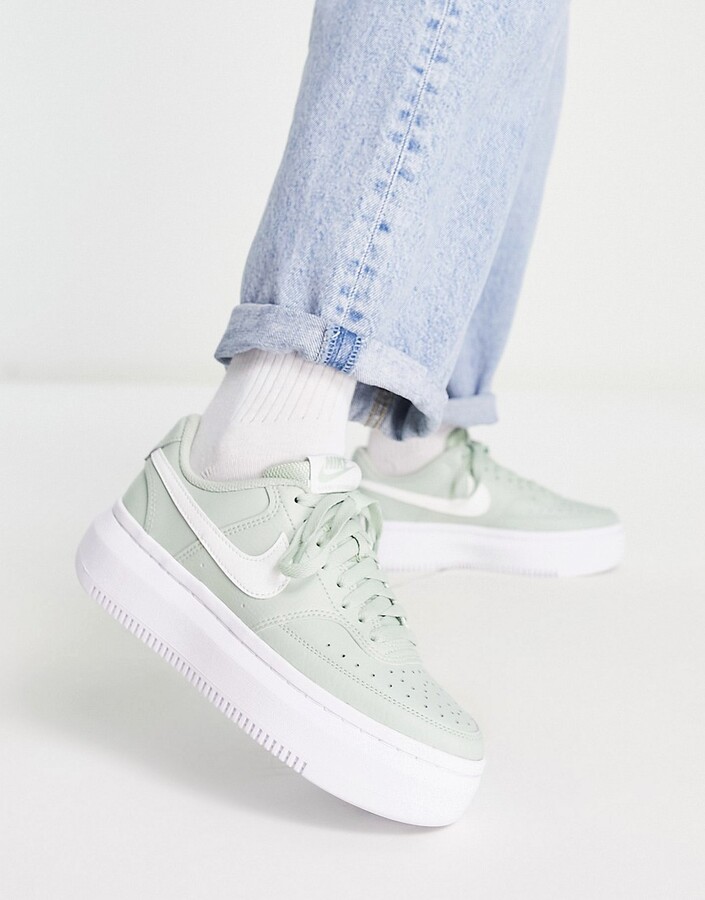 Nike Court Vision Alta leather platform sneakers in green and white
