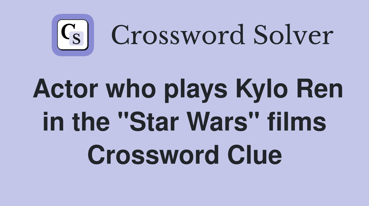 Actor who plays Kylo Ren in the quot Star Wars quot films Crossword Clue