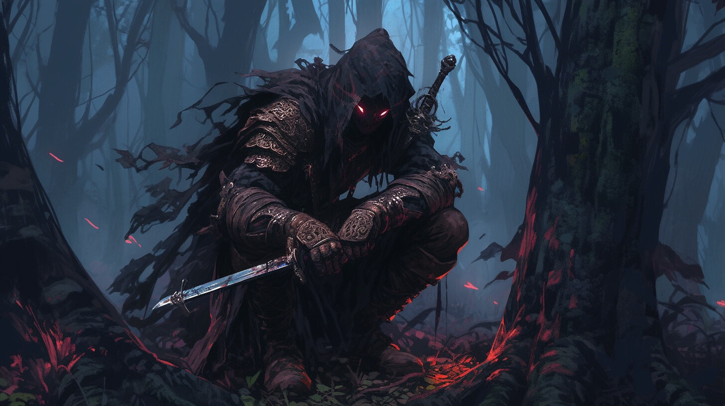 Premium Photo Sinister specter in armor holding a sword in a misty