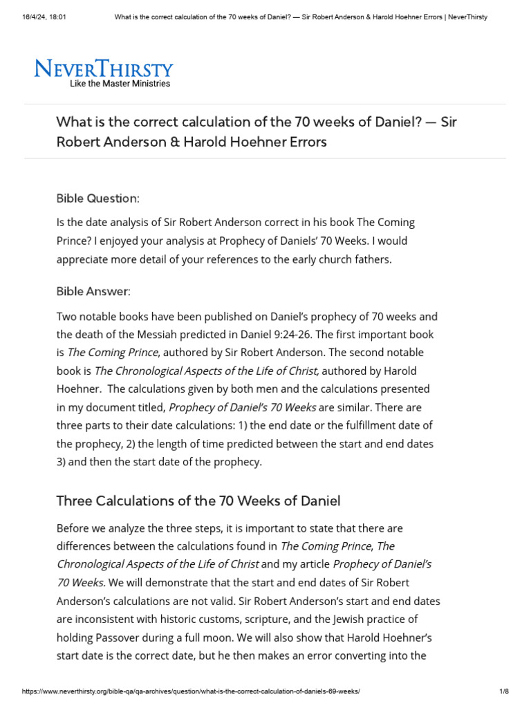 What Is The Correct Calculation of The 70 Weeks of Daniel Sir Robert