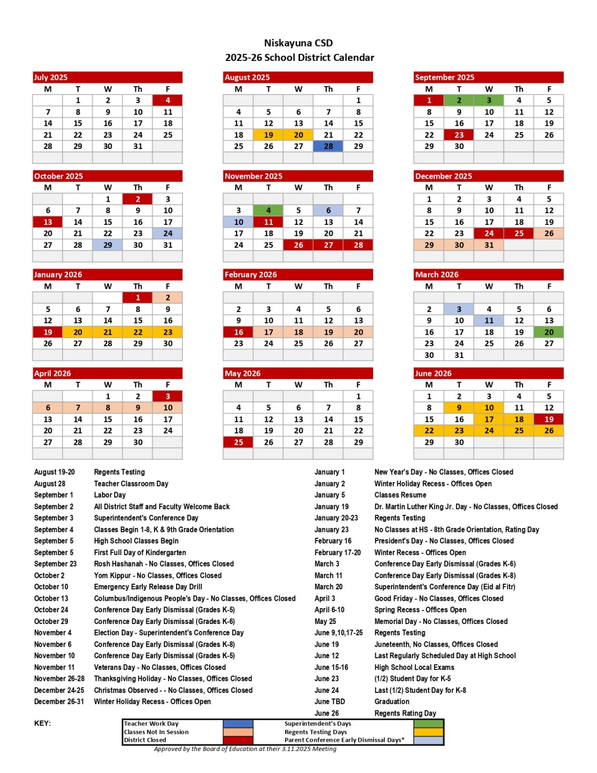 Niskayuna CSD Calendar 25 26 revised PDF EduCounty