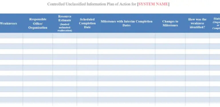 POAM Templates Examples for NIST 800 171 DFARS Compliance