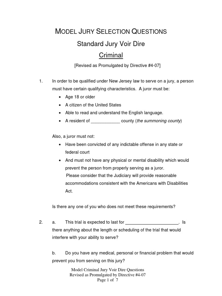 Standard Jury Voir Dire Criminal NJ Courts Download Free PDF