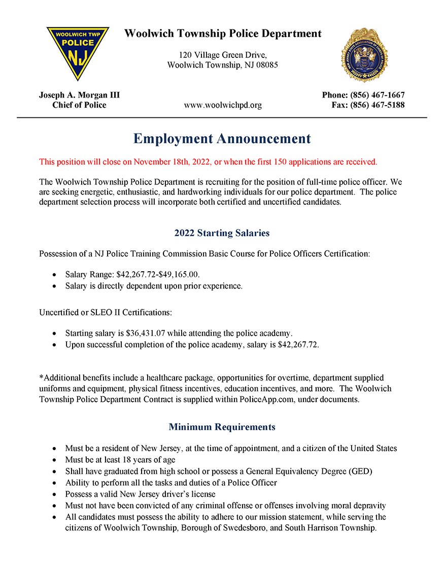 PoliceApp com on Twitter: quot Woolwich Township Police Department NJ Job