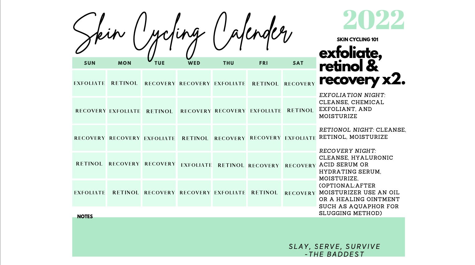 Printable Skin Cycling Calendar 2022 Etsy