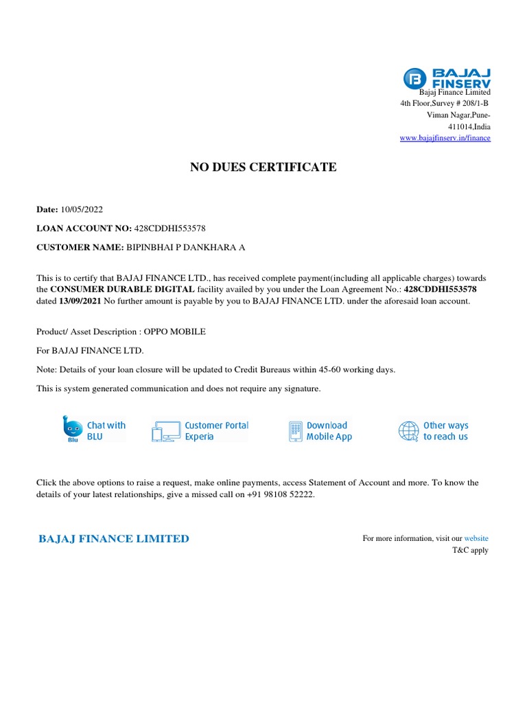 No Due Certificate from Bank: Full Form Format Benefits L T Finance