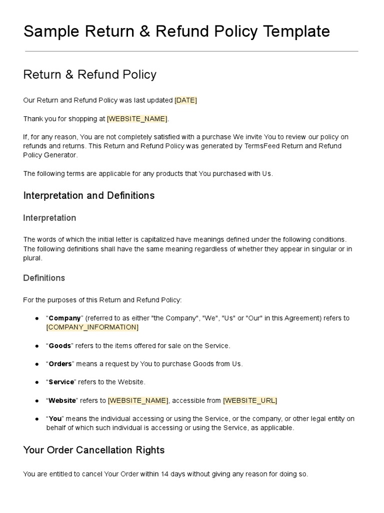 Sample Return Refund Policy Template PDF PDF Service Industries