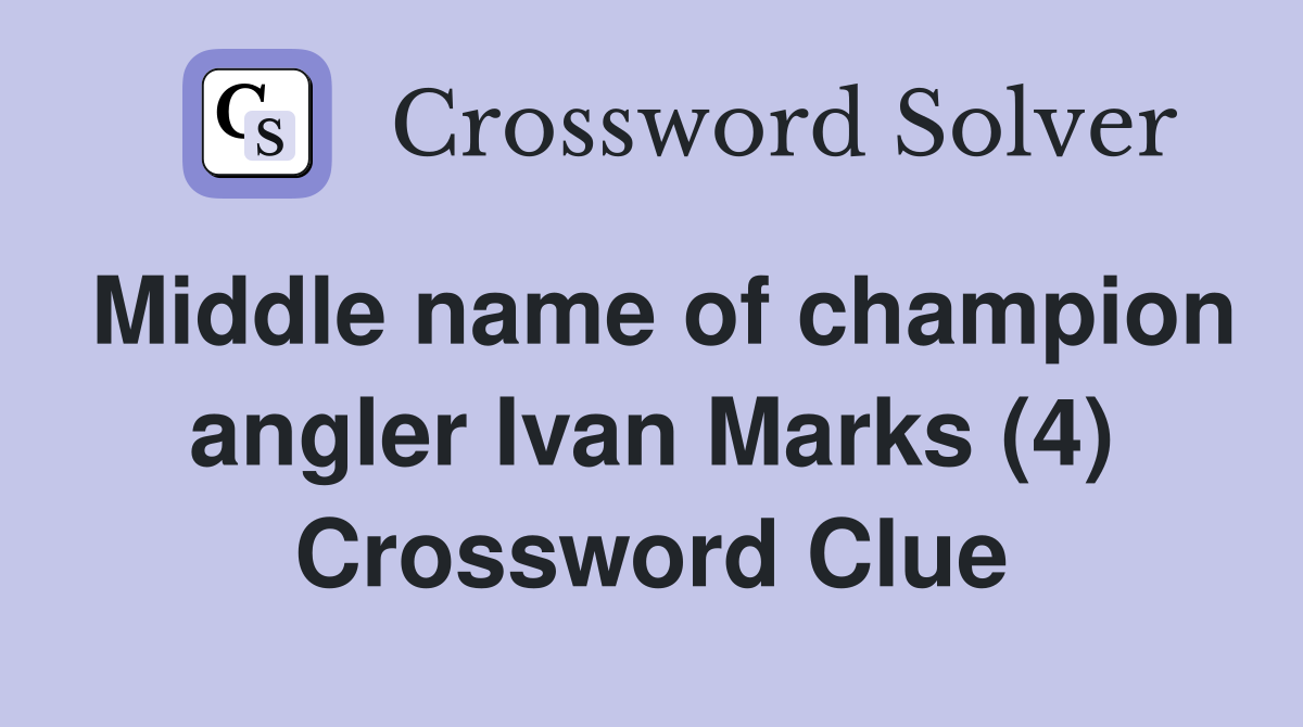 Middle name of champion angler Ivan Marks (4) Crossword Clue Answers