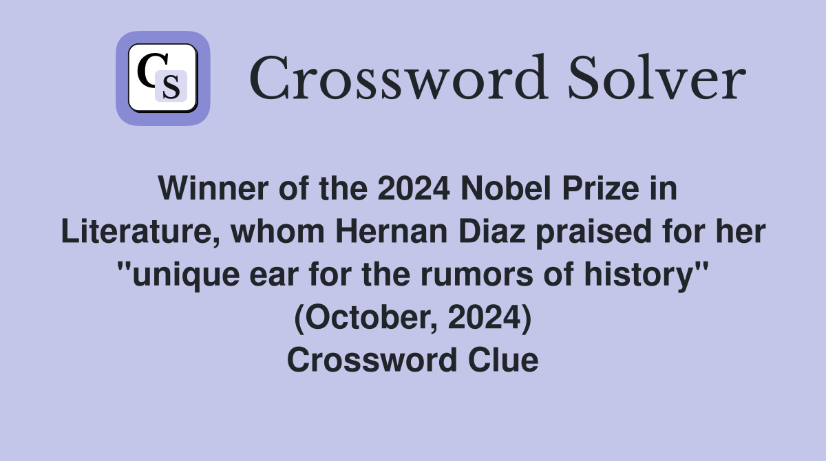 Nobel Prize category Crossword Clue Answers Crossword Solver