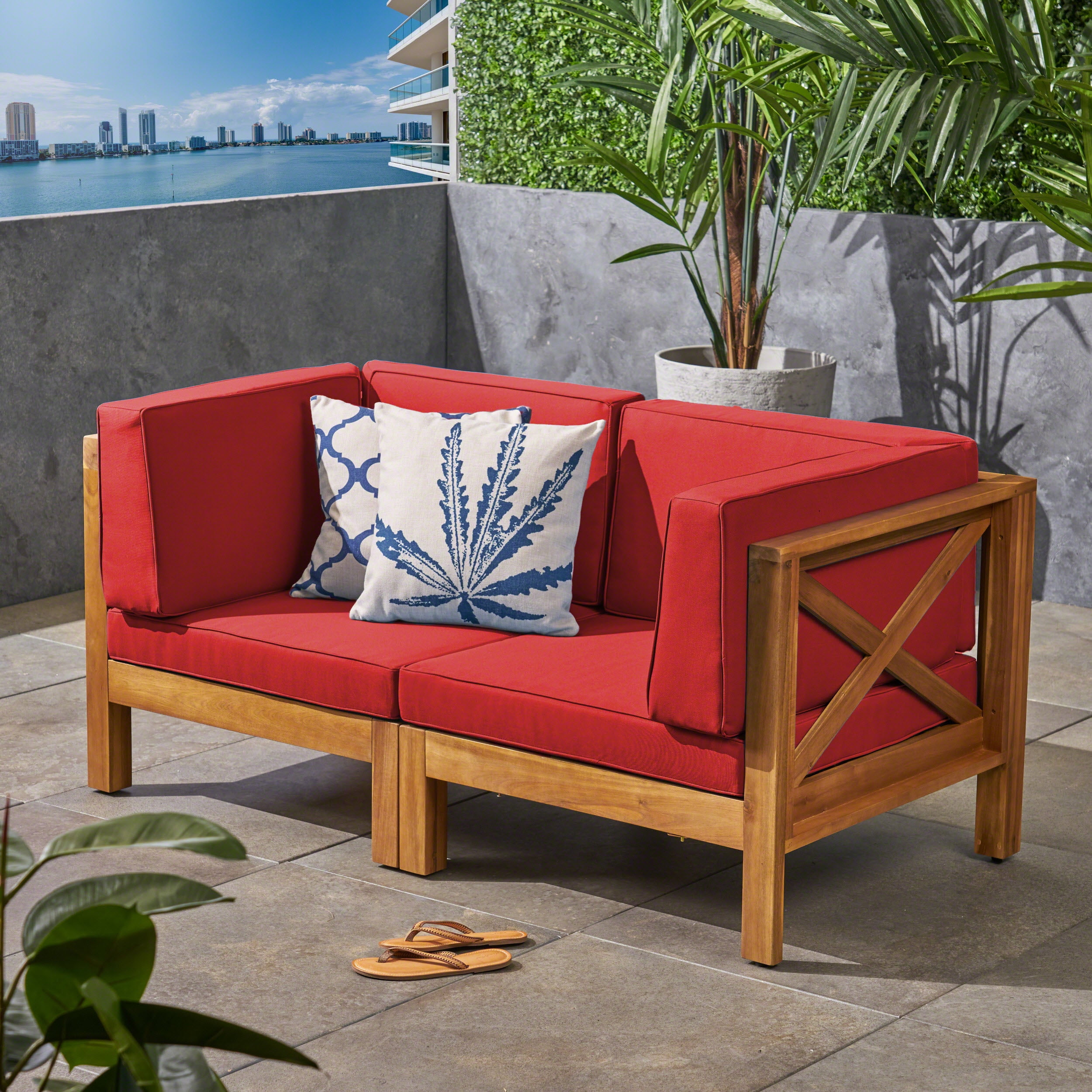 Noble House Brava 2 Piece Outdoor Acacia Wood Loveseat in Red Walmart com