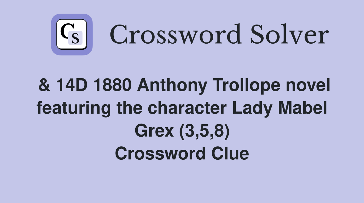 14D 1880 Anthony Trollope novel featuring the character Lady Mabel