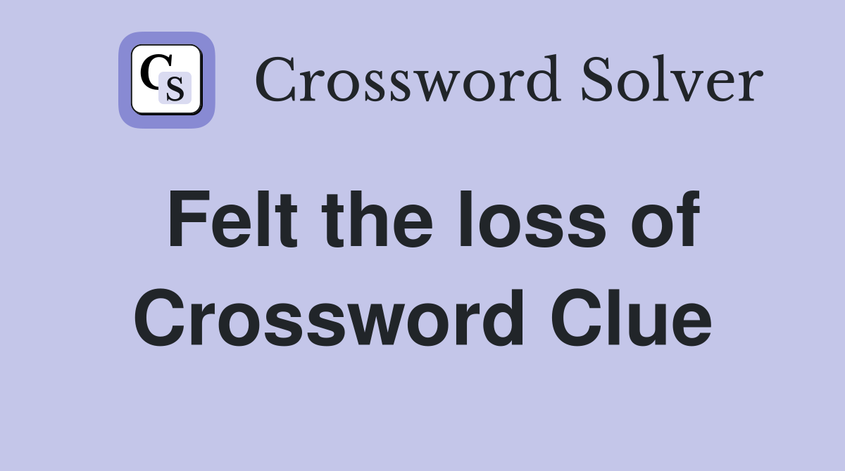 Felt the loss of Crossword Clue Answers Crossword Solver