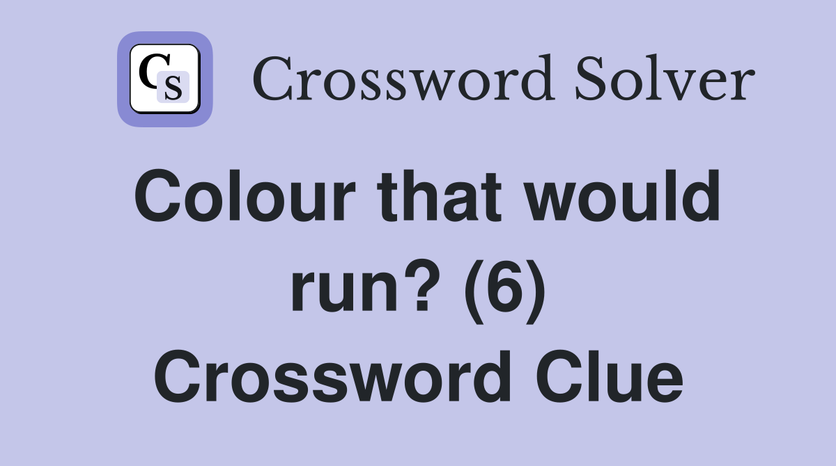 Colour that would run? (6) Crossword Clue Answers Crossword Solver