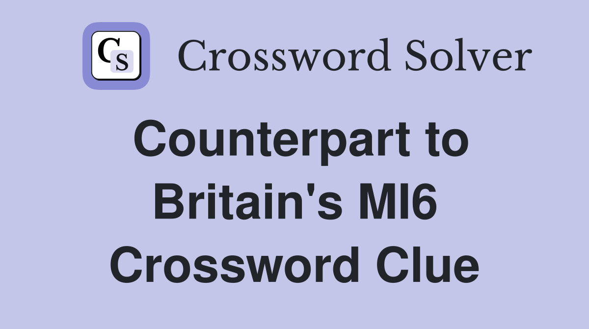 Counterpart to Britain #39 s MI6 Crossword Clue Answers Crossword Solver