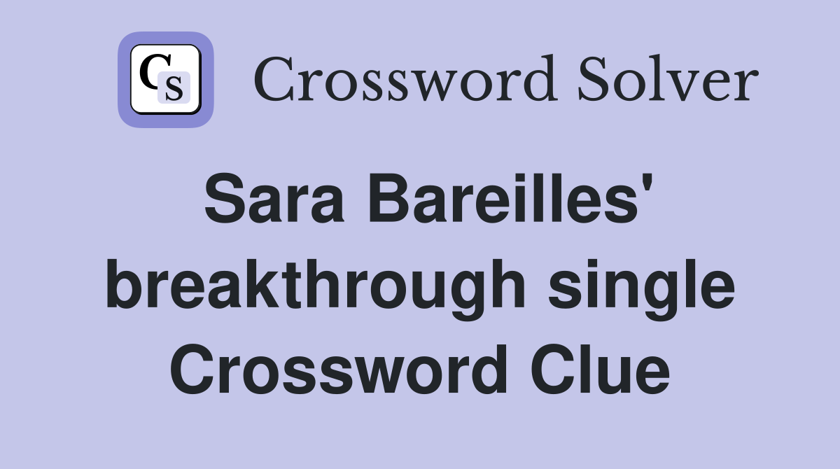 Sara Bareilles #39 breakthrough single Crossword Clue Answers